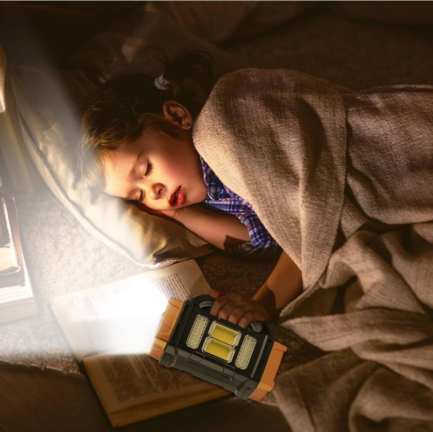 Foco LED Solar Recargable – Linterna de Camping con 4 Modos de Luz, Impermeable IP44, Gran Angular, USB y Solar