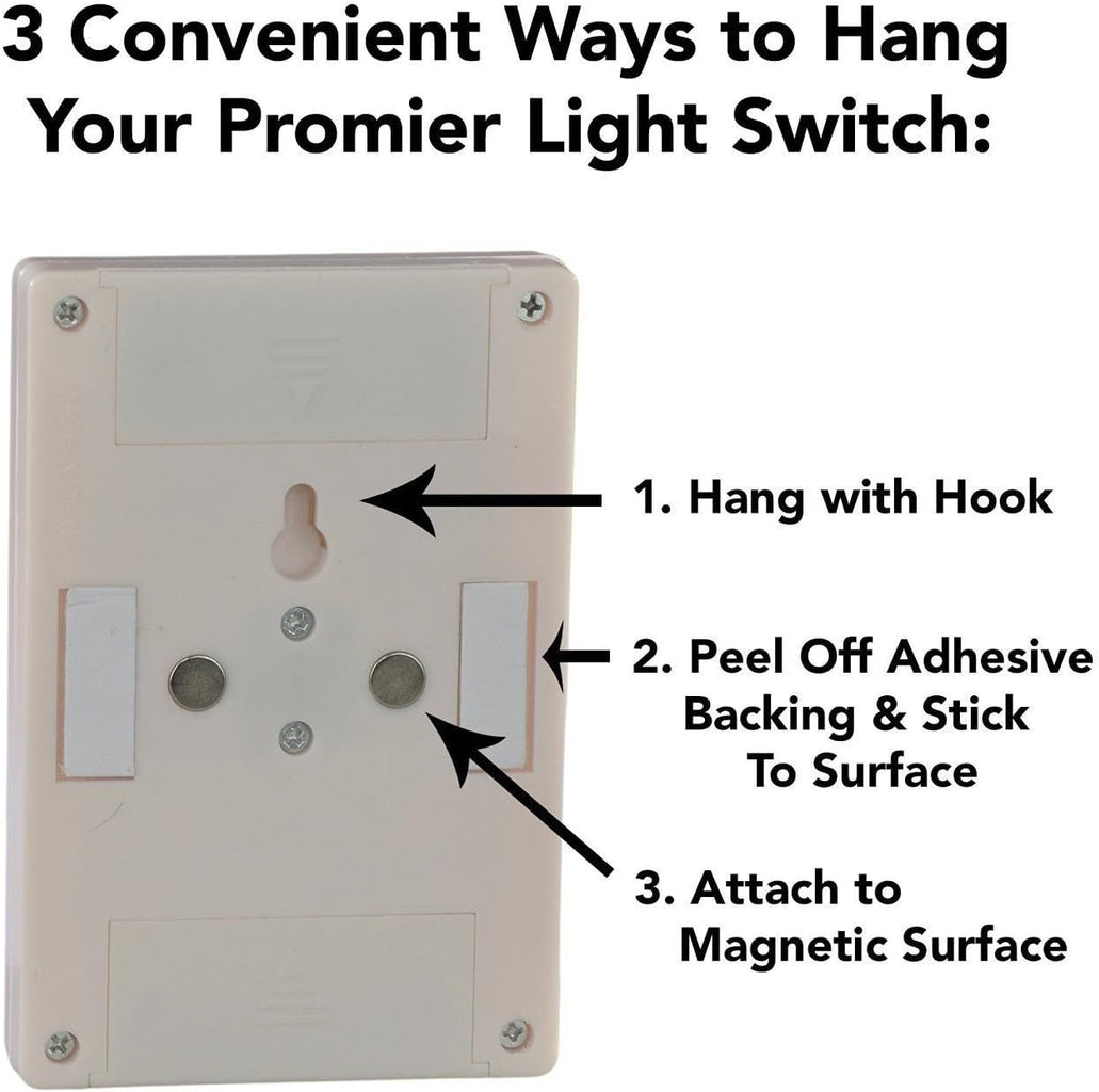Ilumina cualquier espacio en segundos con el Interruptor de Luz Inalámbrico Promier de 200 Lúmenes. Perfecto para armarios, cobertizos de herramientas, campistas y cualquier lugar donde necesites luz rápida y sin cables. Este interruptor se instala fácilmente con los cierres de gancho y bucle de doble cara, imanes o soporte de ojo de cerradura, sin requerir electricidad ni cableado.