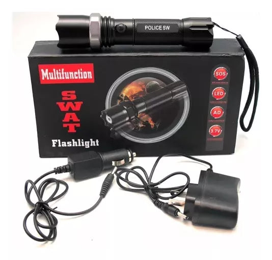 Linterna LED Táctica Recargable - Alta Potencia con Zoom y Luz de Emergencia SOS